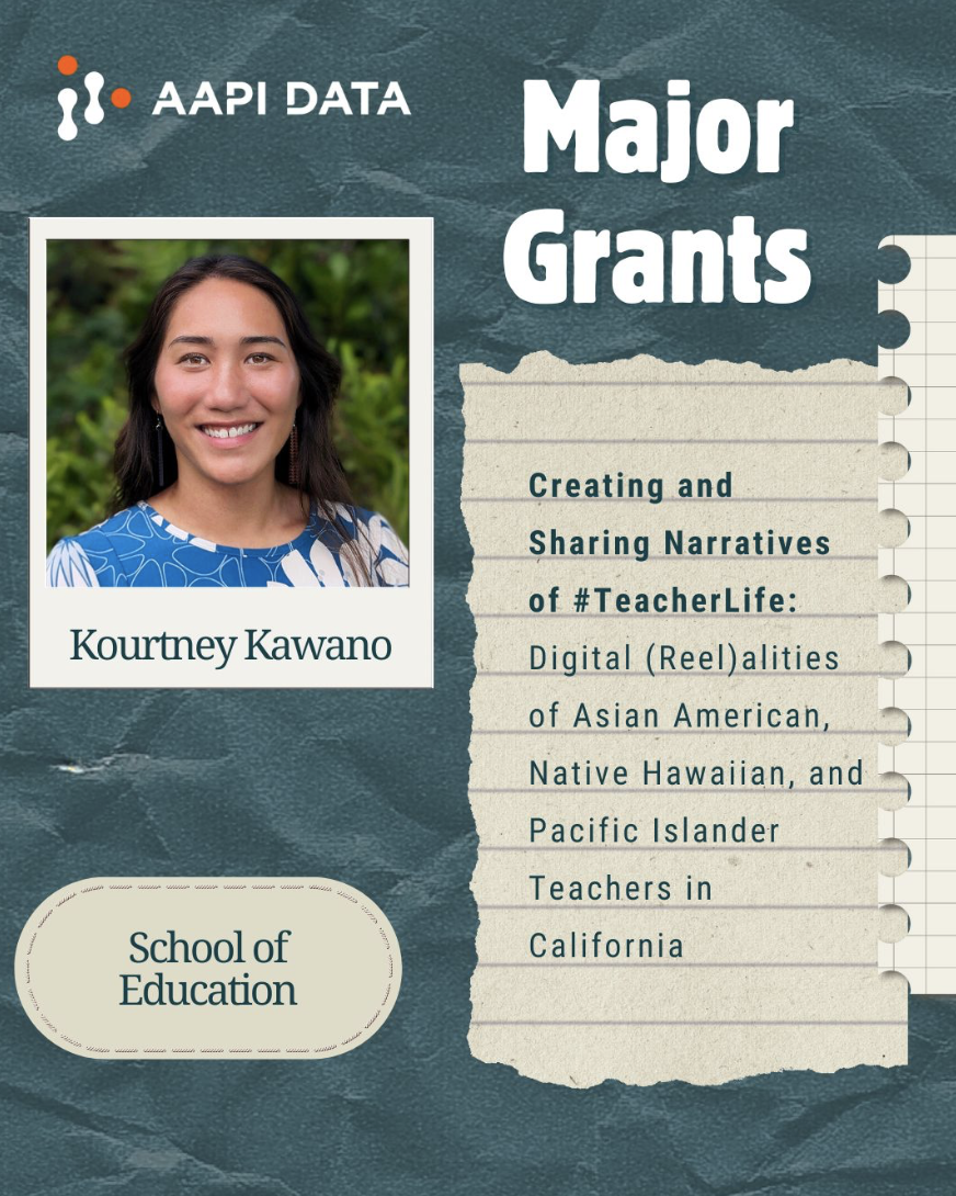 October 1, 2025 – Research team (Kourtney Kawano, Lillie Ko-Wong, Willa Mei Kurland) awarded internal faculty grant through AAPI Data and the Asian American Research Center through UC Berkeley to conduct qualitative data collection of AANHPI K–12 teacher-content creator perspectives and experiences with race and racism.