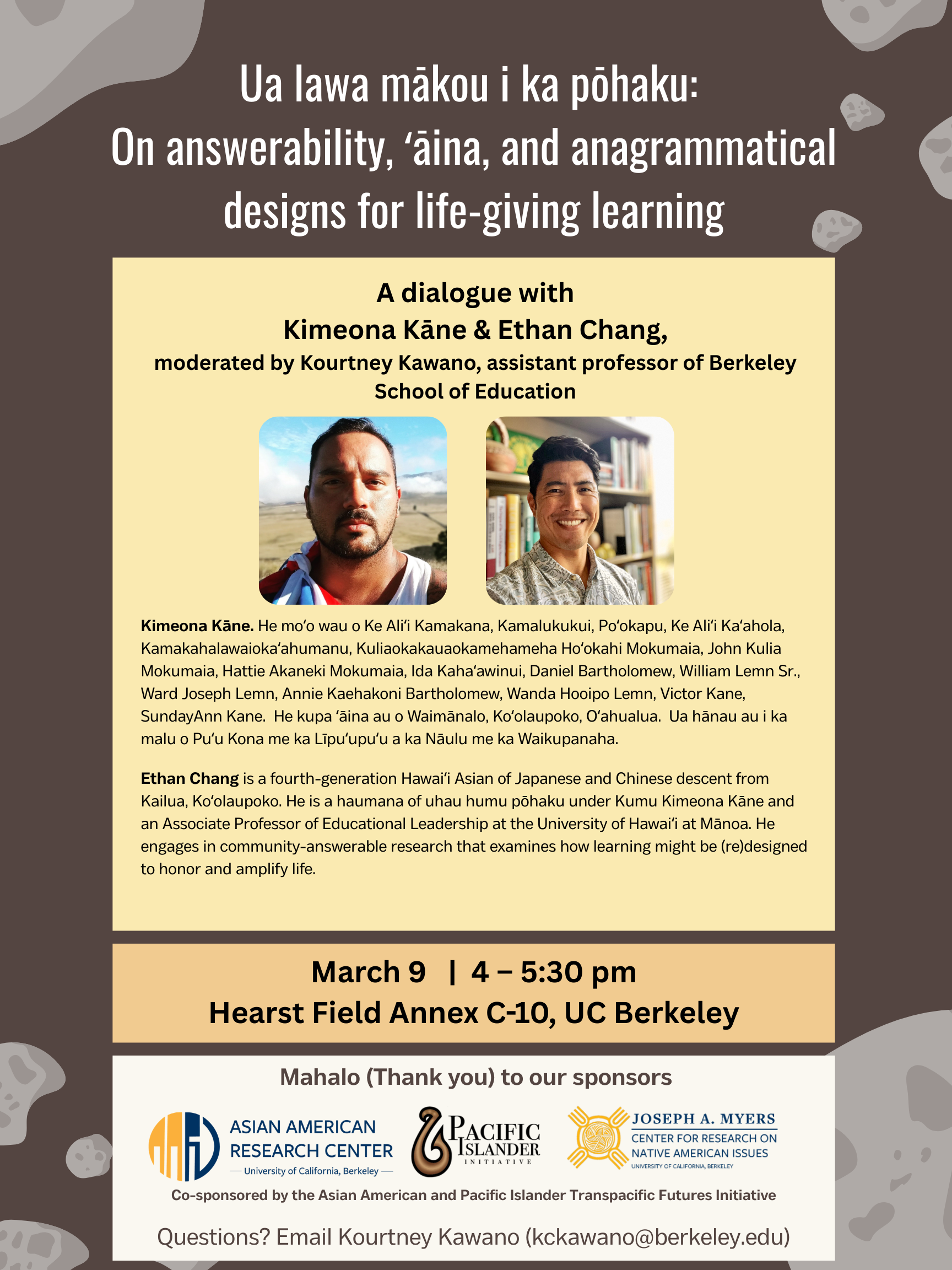 The Asian American Research Center at UC Berkeley and the Asian American and Pacific Islander Transpacific Futures Initiative in partnership with the Pacific Islander Initiative, the Joseph A. Myers Center of Research on Native American Issues, and the DEIBJ Building Capacity for Pacific Island Students Curriculum and Pedagogy Grant present